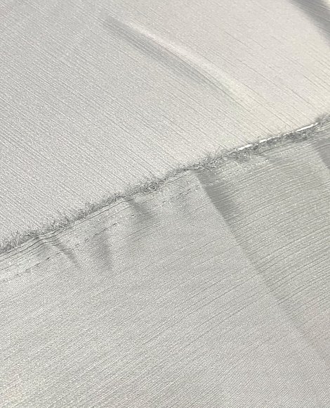 Тонкая, летящая и струящаяся ткань с перламутровой поверхностью. Полупрозрачная. Шифон технике Крэш . Крэш — жатая ткань. Её особенность — долговечные складки, морщины и заломы, которые создаются на ткани благодаря длительному воздействию пресса. Для изготовления ткани-крэш используют тонкие или синтетические материалы, поскольку именно на таких тканях заломы держатся долго и не распрямляются. Легко драпируется и собирается в плавные формы. Не смотря на свою легкость, достаточно прочная и долговечная. Используется в пошиве разнообразной легкой одежды - платья, блузки, юбки. Легко стирается и не требует глажки.